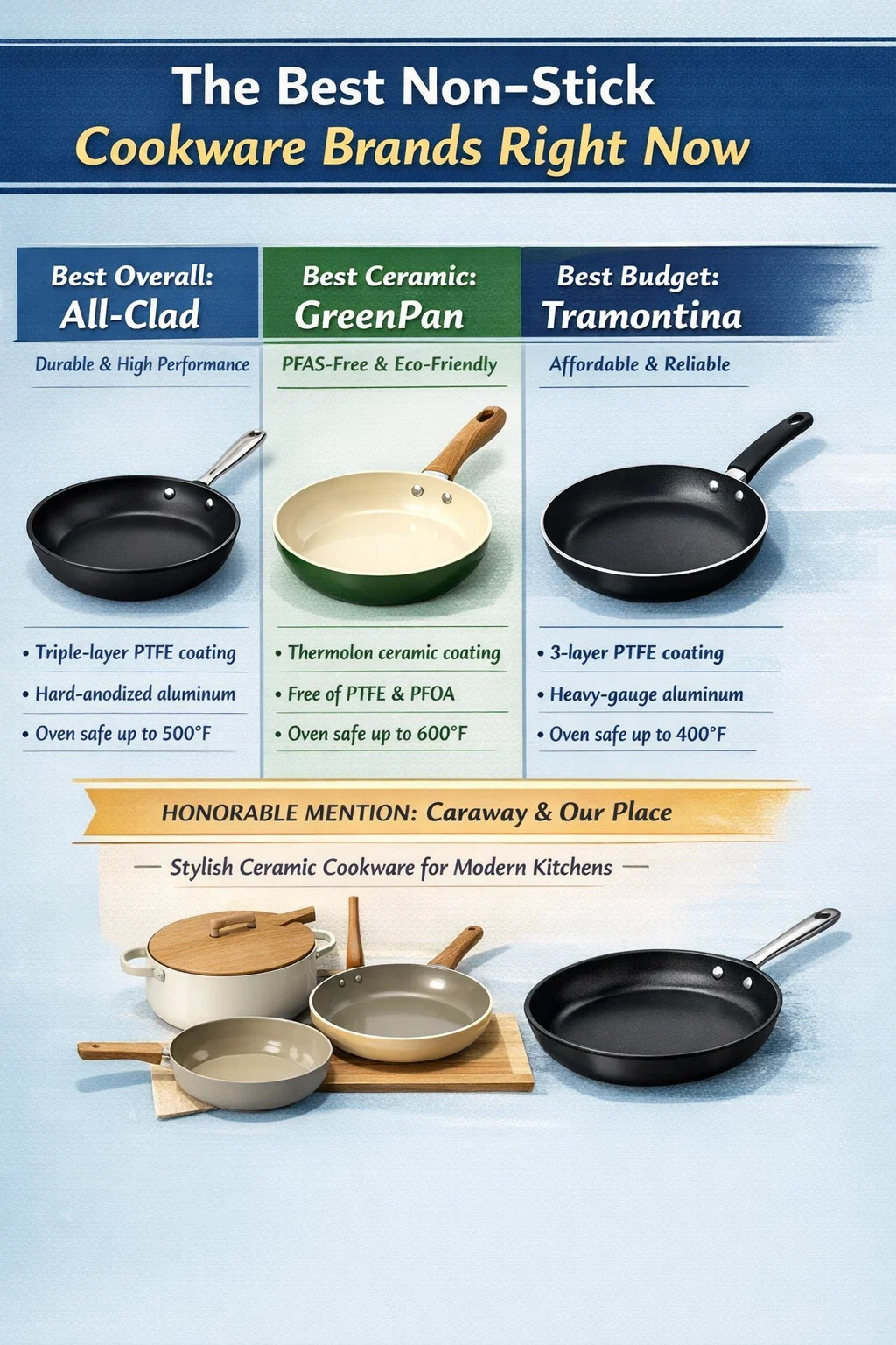 Si vous voulez une réponse claire : Tout habillé, Zwilling et Pan Vert se classent régulièrement parmi les meilleures marques d'ustensiles de cuisine antiadhésifs à travers des examens professionnels, des communautés de cuisiniers à domicile et des tests de laboratoire indépendants. All-Clad est leader en termes de durabilité et de performances, Zwilling (avec sa gamme Demeyere) excelle pour les cuisiniers sérieux et GreenPan est en tête du segment antiadhésif en céramique pour ceux qui évitent les revêtements à base de PTFE.