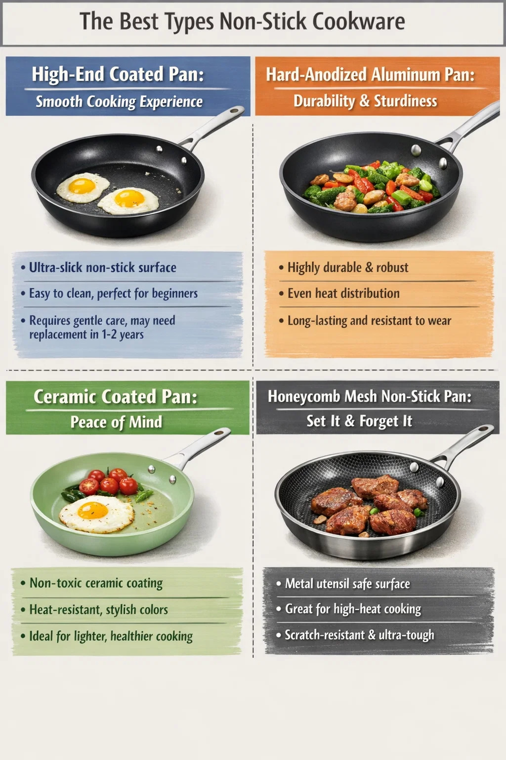 Pourquoi c'est bon : Il conduit la chaleur très rapidement et uniformément, évitant ainsi les points chauds au centre de la casserole tandis que les côtés restent froids. Le revêtement est généralement plus étroitement lié à la base, ce qui le rend moins sujet aux éclats et lui confère une durée de vie plus longue que les poêles antiadhésives classiques.