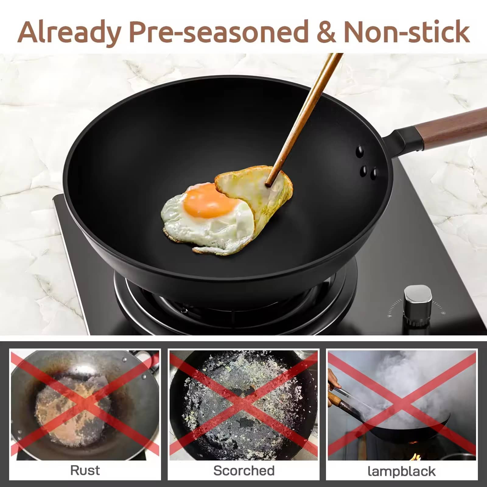 Poêle à frire wok à fond à induction en aluminium moulé sous pression, travail profond en céramique antiadhésif avec couvercle